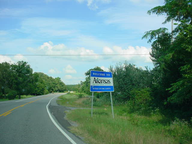 "Welcome to Arkansas" sign as